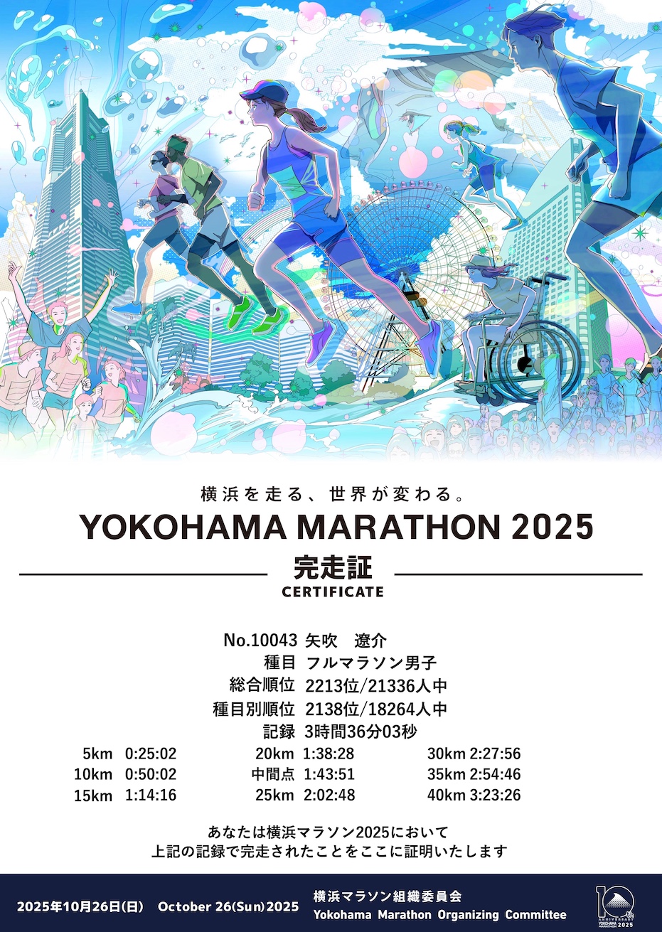 サブ 3.5(3 時間 30 分切り)を目標に初めての横浜マラソンに参加。